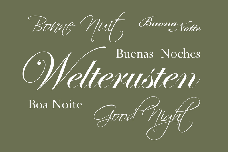 De combinatie van een olijfgroene achtergrond met witte letters zorgt voor een warm en gebalanceerd geheel.