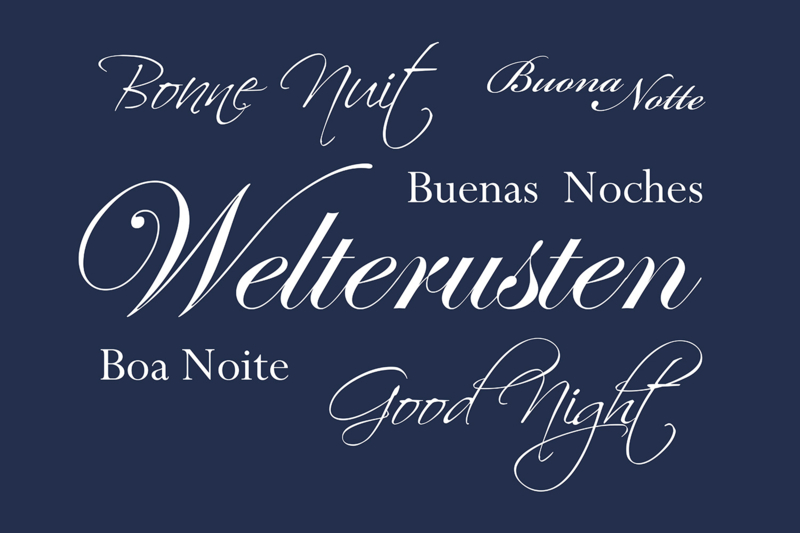 De combinatie van een nachtblauwe achtergrond met lichte of beige letters zorgt voor een elegant en gebalanceerd geheel.