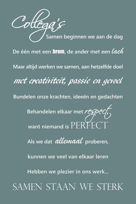Een tekst op canvas in petrol is ideaal als je sfeer wilt toevoegen met nét wat meer diepte en contrast.