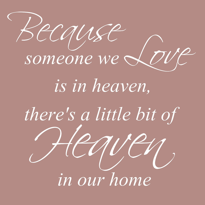 Breng een warme en betekenisvolle sfeer in je interieur met deze tekst op canvas. De quote “Because someone we love is in heaven” is een zachte herinnering aan een dierbare die niet meer bij je is, maar altijd in je hart blijft. Een respectvolle en liefdevolle boodschap die vooral in de woonkamer, slaapkamer of een persoonlijke hoek een waardevolle plek krijgt.